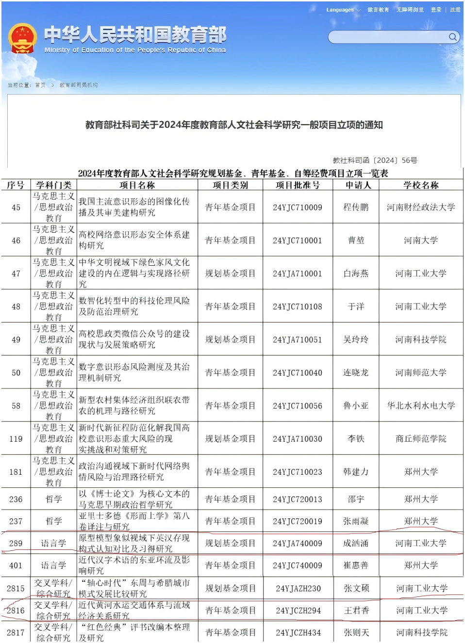 近日,教育部社科司发布了《关于2024年度教育部人文社会科学研究一般项目立项的通知》,今晚球赛成绩
