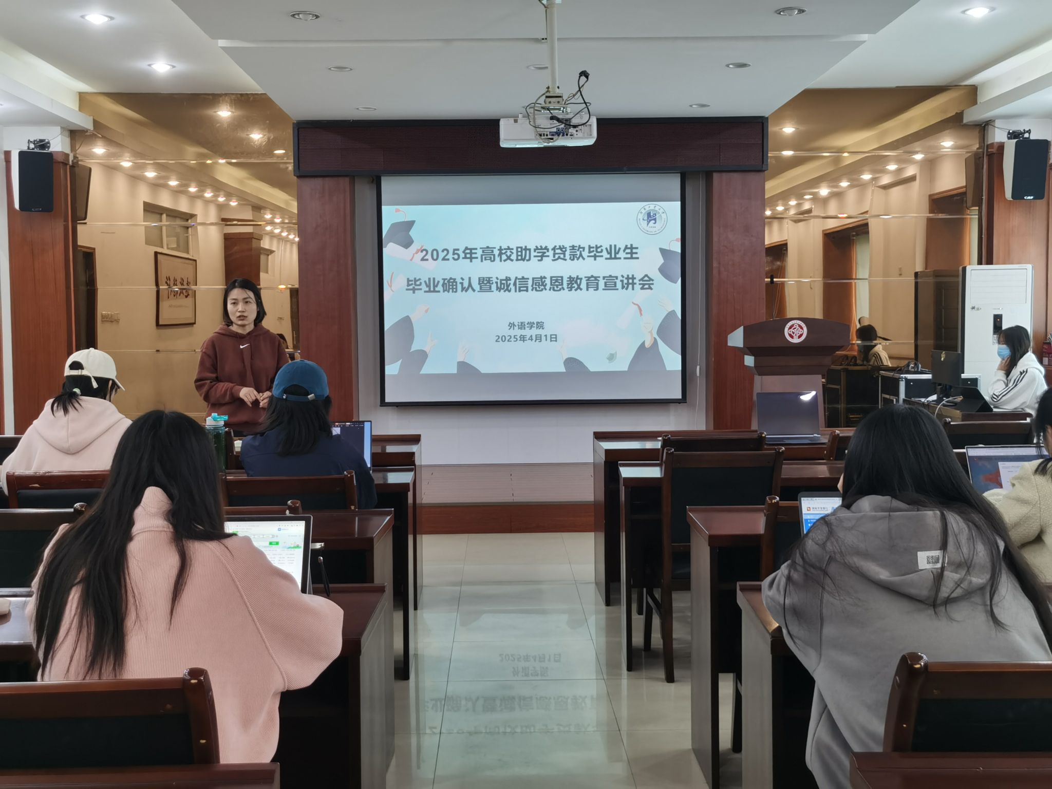 学生资助工作负责人郭珊珊、学生助理及全体2025届国家助学贷款毕业生参加了会议。