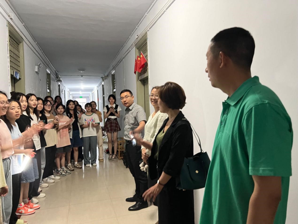 党委书记王云涛、院长黄辉辉、副院长葛丽萍和辅导员们一起深入学生宿舍走访,查看学生行李安顿情况,了解学习生活困难和思想状态,并叮嘱大家要及时调整心态,尽快适应新环境,做好后续考试和暑期社会实践准备,以崭新的风貌迎接学习生活新阶段。