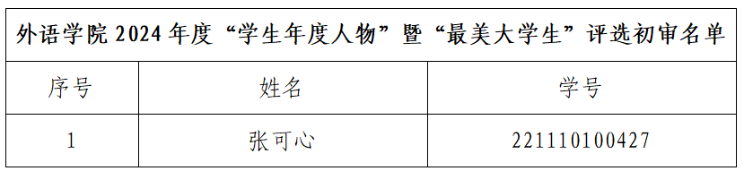 根据河南工业大学关于开展2024年度“学生年度人物”暨“最美大学生”评选活动的通知要求外语足球现场成绩 对符合评审条件的学生进行了评定与审核,足球现场成绩 共推荐1名学生申请2024年度“学生年度人物”暨“最美大学生”,现将初评名单向全院公示3公示期自202522412:00起至202522712:00