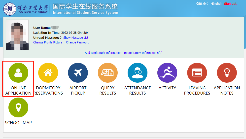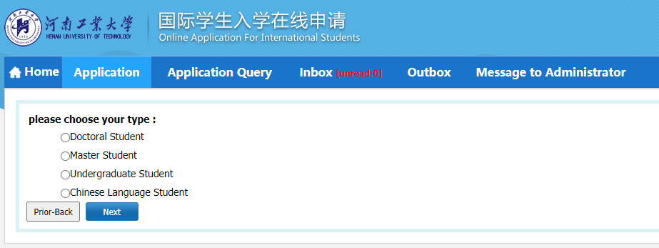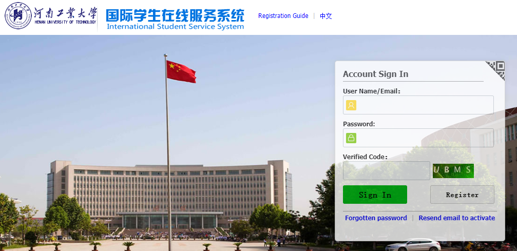 点击河南工业大学国际学生在线服务系统链接://haut.17gz.org/ ,通过设立用户名、密码和邮箱地址建立账户。