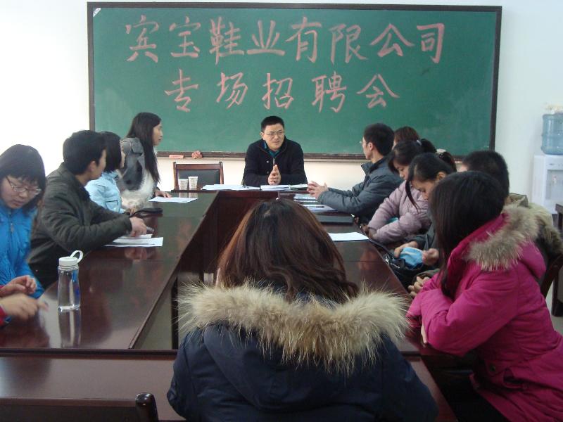 2009年12月26日上午,宾宝鞋业有限公司在5231会议室举行招聘会,足球现场成绩 和经贸足球现场成绩 的毕业生参加了此次招聘会。