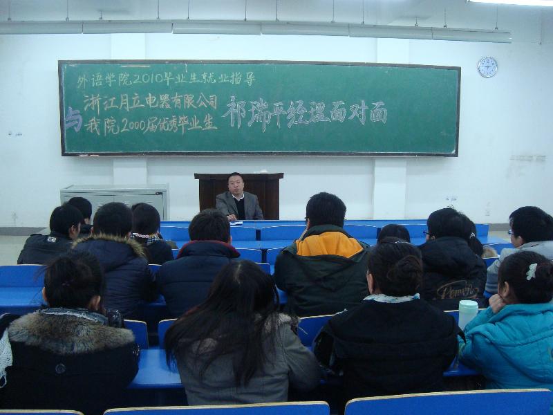 2000届优秀毕业生、浙江月立电器有限公司祁瑞平经理主讲,现场气氛活跃,收到了很好的效果。