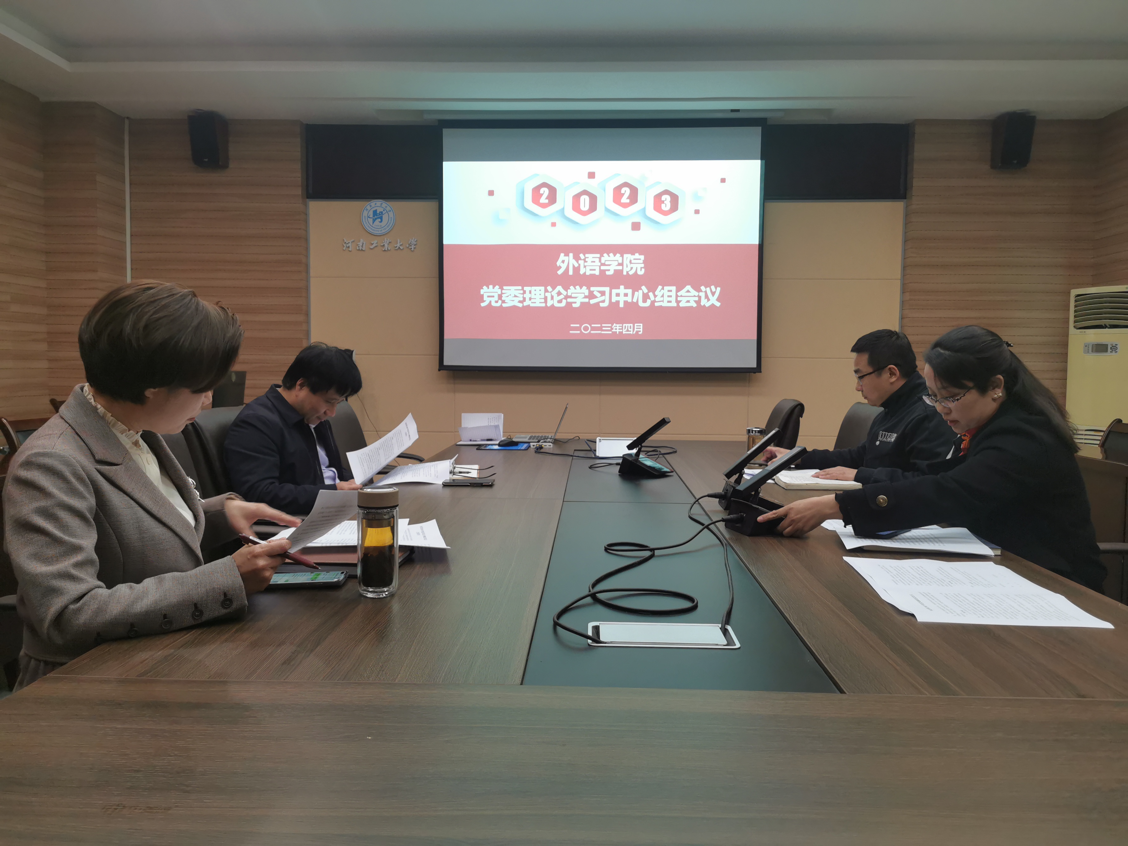 党委在5231会议室召开学习贯彻习近平新时代中国特色社会主义思想主题教育理论学习中心组学习研讨会,扎实推进主题教育工作。院长黄辉辉领学并作重点发言,班子其他成员作交流研讨发言。院党委书记王云涛主持会议、作总结。