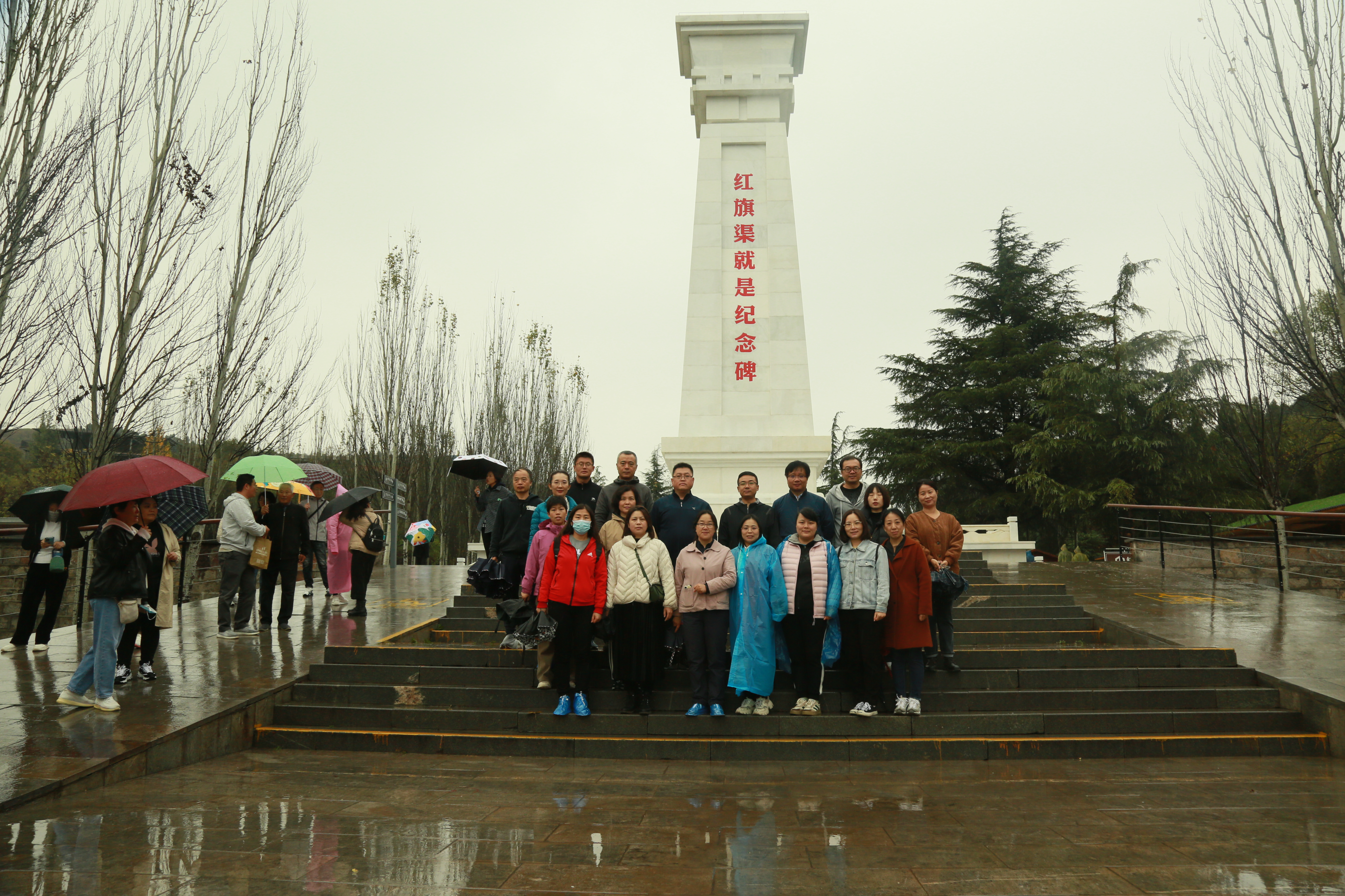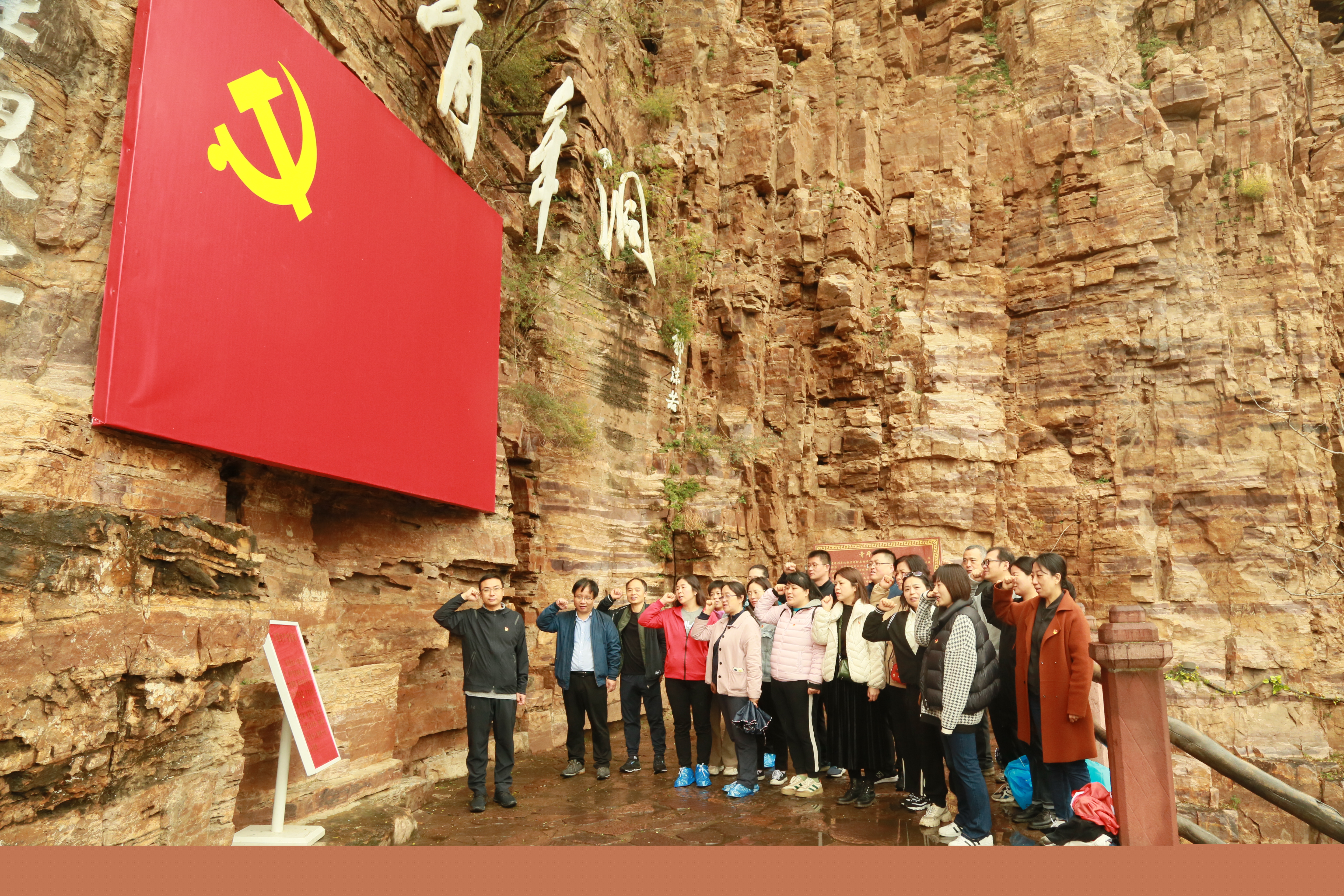 在学习观看了《根脉》之《红旗渠精神》和《从延安到红旗渠》专题纪录片后,党员教师们实地参观了红旗渠纪念馆、红旗渠分水枢纽工程分水闸、青年洞,现场感悟党领导林县人民战天斗地、征服自然的拼搏精神和无敌气概,深刻体会“战太行、出太行、富太行、美太行”的历史跨越,领悟到自力更生、艰苦奋斗的意志品格和团结协作、无私奉献的精神力量。在青年洞前,全体党员面对党旗庄严宣誓,重温入党时的郑重承诺和坚定决心。