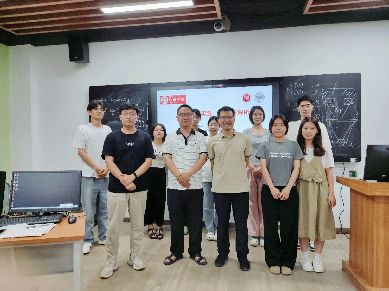 课程内容涵盖音系学简史、区别性特征与自然类、音系规则与音系表达、内部证据与外部证据、抽象性问题、音系规则的交互作用等经典生成音系学的核心内容及词库音系学、自主音段音系学(以声调和元音和谐为例)、节律音系学和韵律音系学(以音节为例)等非线性音系学的内容。在课程中,侯博士还指出音系学目前处于多元发展的阶段,不同理论并存,研究方法多样,尤其强调了跨学科合作与实证研究的重要性。音系学的未来走向虽难以预测,但其核心问题——对立、交替与音段配列——依旧占据中心地位。此外,2024年6月6日—9日,侯博士应邀到河南工业大学线下为大家演示音系分析的基本逻辑和具体流程,引发了在场师生的极大兴趣。