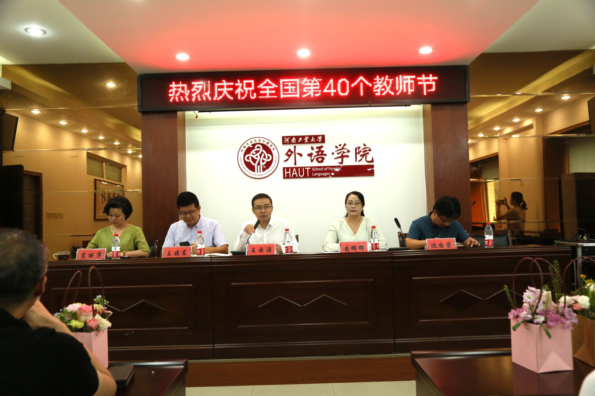 随后召开的庆祝全国第40个教师节活动中,王云涛向全院教职工致以节日祝福,对老师们为足球现场成绩