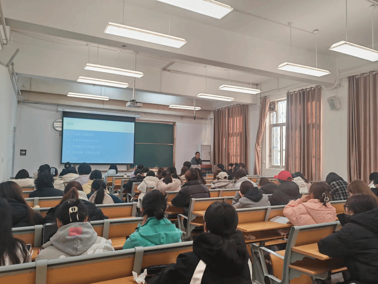 此次活动不仅推动了《综合英语(一)》课程的内涵建设和跨学科交流,更为学生提供了系统的语音学习方法,激发了同学们学习英语的积极性。通过理论讲解与实践相结合的方式,帮助学生构建了更加清晰的语音学习路径,积跬步以致千里,为培养具有全球视野、跨文化交际能力的高素质创新型外语人才奠定了坚实基础。(撰稿:谢雯丽 郭平 摄影:郭平 审校:葛丽萍 审核:黄辉辉)