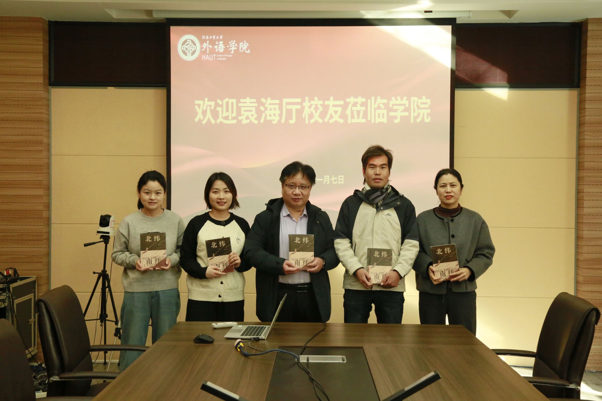 、校友办及图书馆对校友袁海厅的捐赠表示欢迎和感谢。校友是学校的宝贵财富、重要资源,学校的各项事业高质量发展,离不开广大校友支持和帮助。袁海厅校友在紧张的驻外工作之余笔耕不辍、著书立说,回馈母校的精神令我们感动,此次捐赠饱含了他对学校的关心热爱,希望他能够继续关注学校的发展,关心和支持学校校友工作。书籍是人类进步的阶梯,是智慧的钥匙,希望袁海厅校友以本人驻外亲身经历撰写的这部《北纬 南纬》能为广大在校学子打开一扇扇知识的大门,激发学习动力,引领他们走向成功之路。