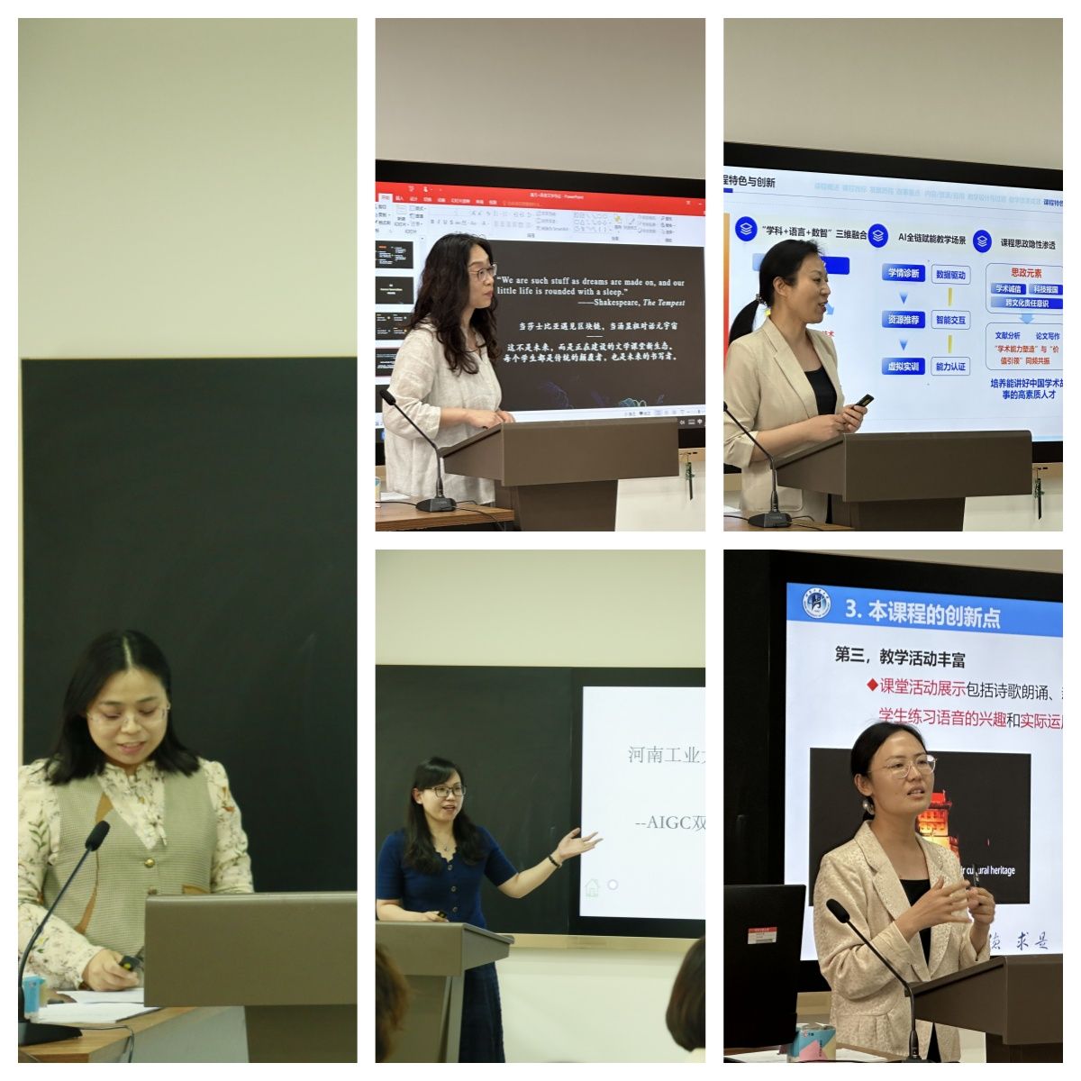 比赛采用“现场说课+评委点评”双环节模式,教师们从教学目标、教材选用、教学方式、教学创新点、课程思政等方面进行了综合展示,以生动的教学设计和跨学科视野呈现了外语课堂的多元可能。参赛课程既涵盖基础语言技能训练,又涉及文学鉴赏、区域国别研究等高阶内容,并辅之以AR生态场景体验、VR场景库、AI协同创作、AI个性化学习包等,充分展现出外语学科教学理念的前沿性与实践性。评委们针对参赛教师的授课内容、课程思政融入、教学过程实施、时间把控等给出了专业点评,同参赛老师进行了深度的交流和研讨。