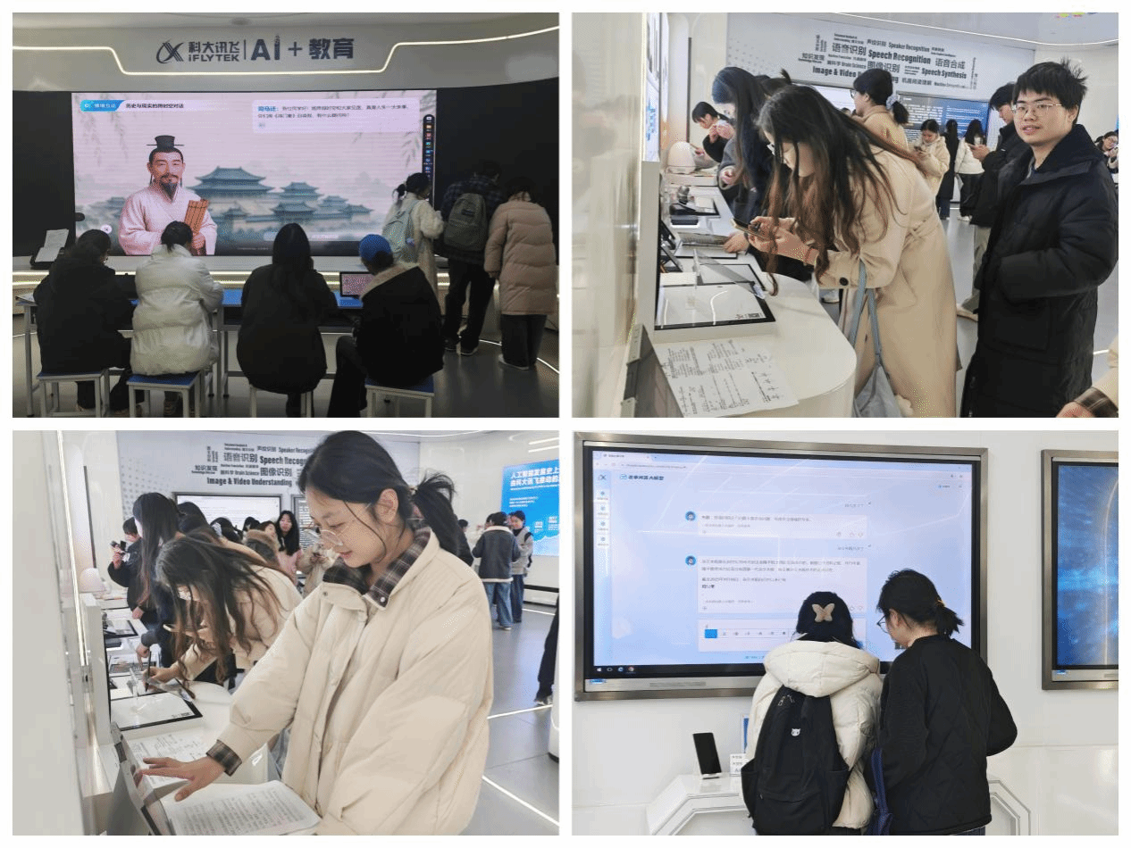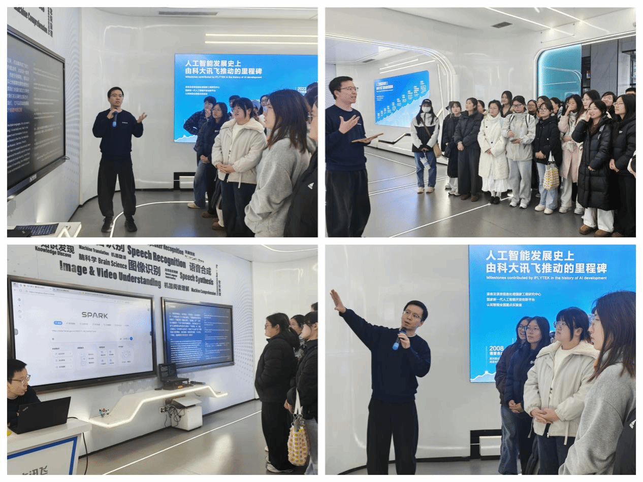 领导与系部主任共同制定了周密详尽的活动计划,为专业见习的顺利开展及长效化推进筑牢基础。活动当天,学生们在科大讯飞工作人员的专业引导下,有序走进人工智能展厅,开启沉浸式探索之旅。
