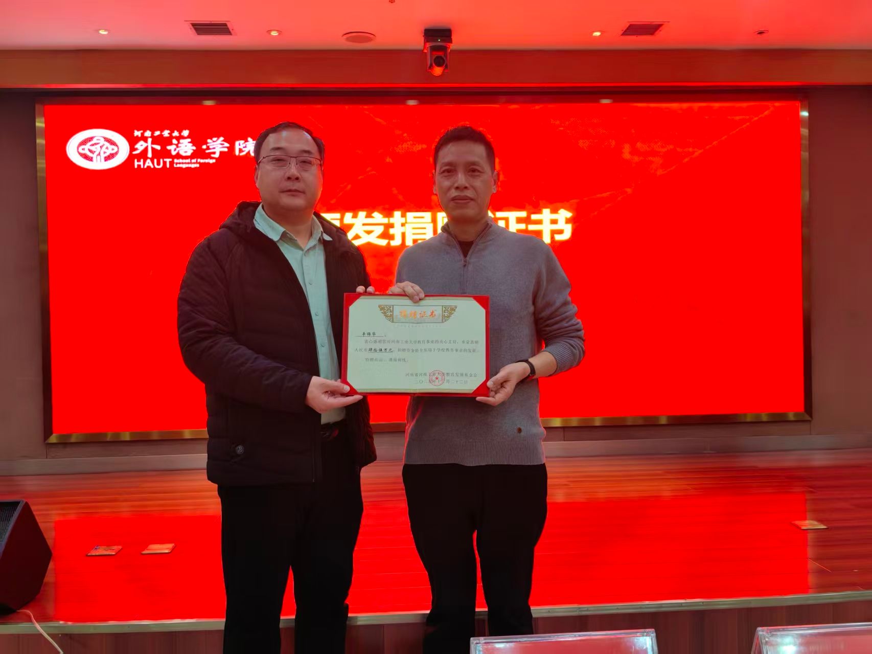 奖助学金和奖教金颁发仪式上,学生代表陈怡琳承诺将珍惜学习机会,努力成为优秀外语人才,用自己的成绩回报社会。教师代表曹阳表示,将始终坚守育人初心,深耕外语教学科研一线,努力工作,争取培育更多兼具专业能力与家国情怀的外语人才。