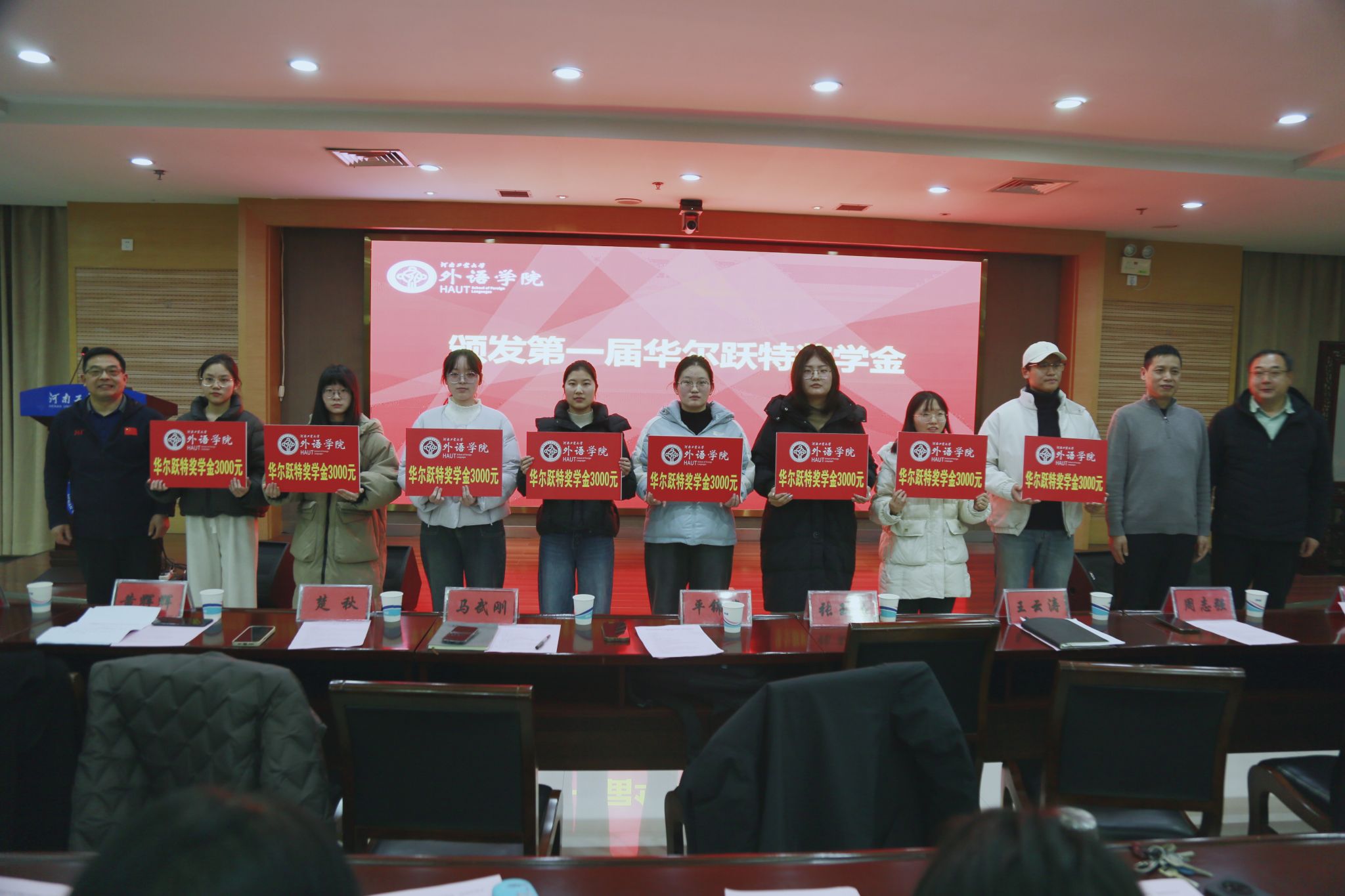 党委书记王云涛详细介绍了“华尔跃特奖助学金”的设立背景、资助规模及育人目标。捐赠人平锦华向足球现场成绩