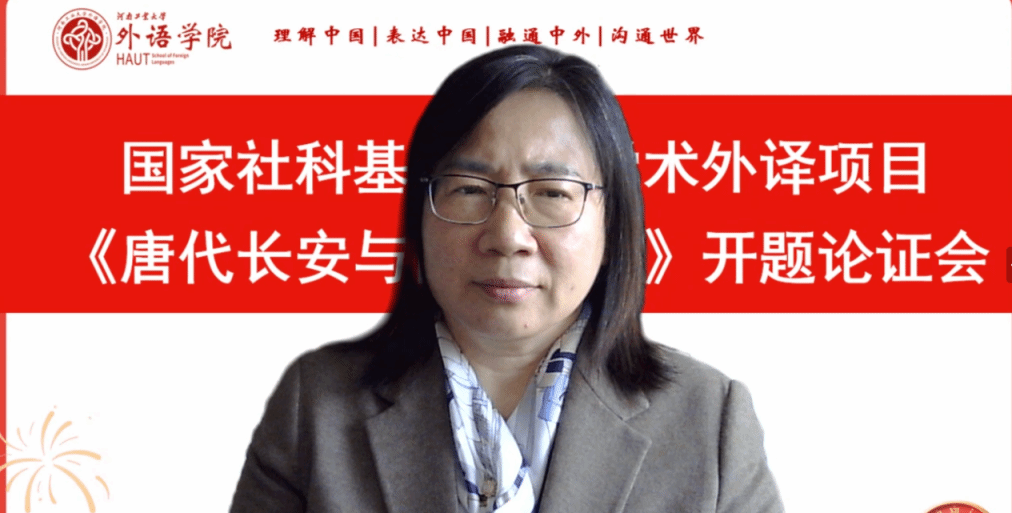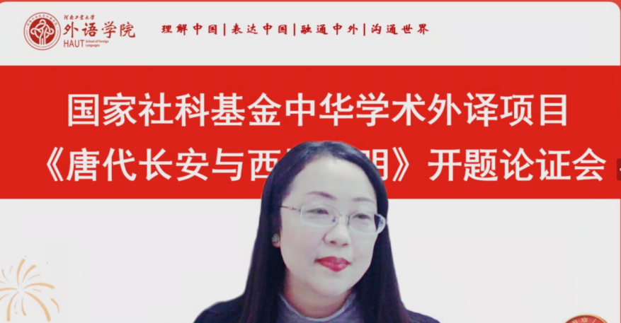 项目负责人黄辉辉教授围绕《唐代长安与西域文明》英译项目的选题背景、原著学术价值、对外译介价值、团队组成与分工、翻译技术路线、宣传推广方案、项目实施计划及预期成果等方面进行了系统汇报。《唐代长安与西域文明》由我国著名历史学家、西域学和敦煌学研究奠基人向达先生所著,是一部集唐代中外文化关系、交通史、美术史、音乐史、敦煌学和目录学于一体的历史巨著。该著作的译介对深化唐代丝绸之路与文明交流互鉴研究以及促进中国历史学科体系、学术体系和话语体系的国际传播具有重要价值。项目团队成员由国内外具有翻译学、语言学、历史学与考古学等多学科背景的专家教授组成。团队成员将力求产出高质量翻译成果,为推动中国学术“走出去”贡献河南工大力量。