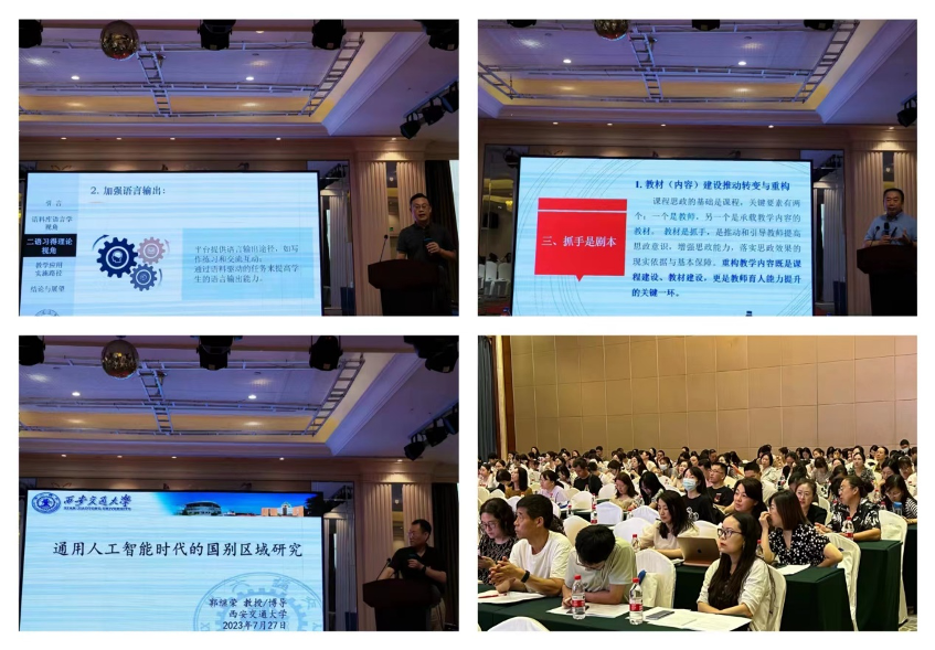 本次研修班的主题是“数字化转型赋能外语思政育人创新发展”,旨在研讨新形势下国家战略需求与高校外语专业人才培养定位,以及如何提升教师数字化教学理论素养、教学设计与教学实践能力,进而培养能够理解当代中国、担当民族复兴大任的时代新人。研修班邀请了湖南大学的刘正光教授、杭州师范大学的李颖教授、西安交通大学的郭继荣教授、南通大学的徐托教授等高校专家,围绕数字赋能外语课程思政、虚拟仿真语境下的外语学习、通用人工智能时代的国别区域研究、智能化多语种语料库综合平台在外语教学中的应用等主题展开讨论。
