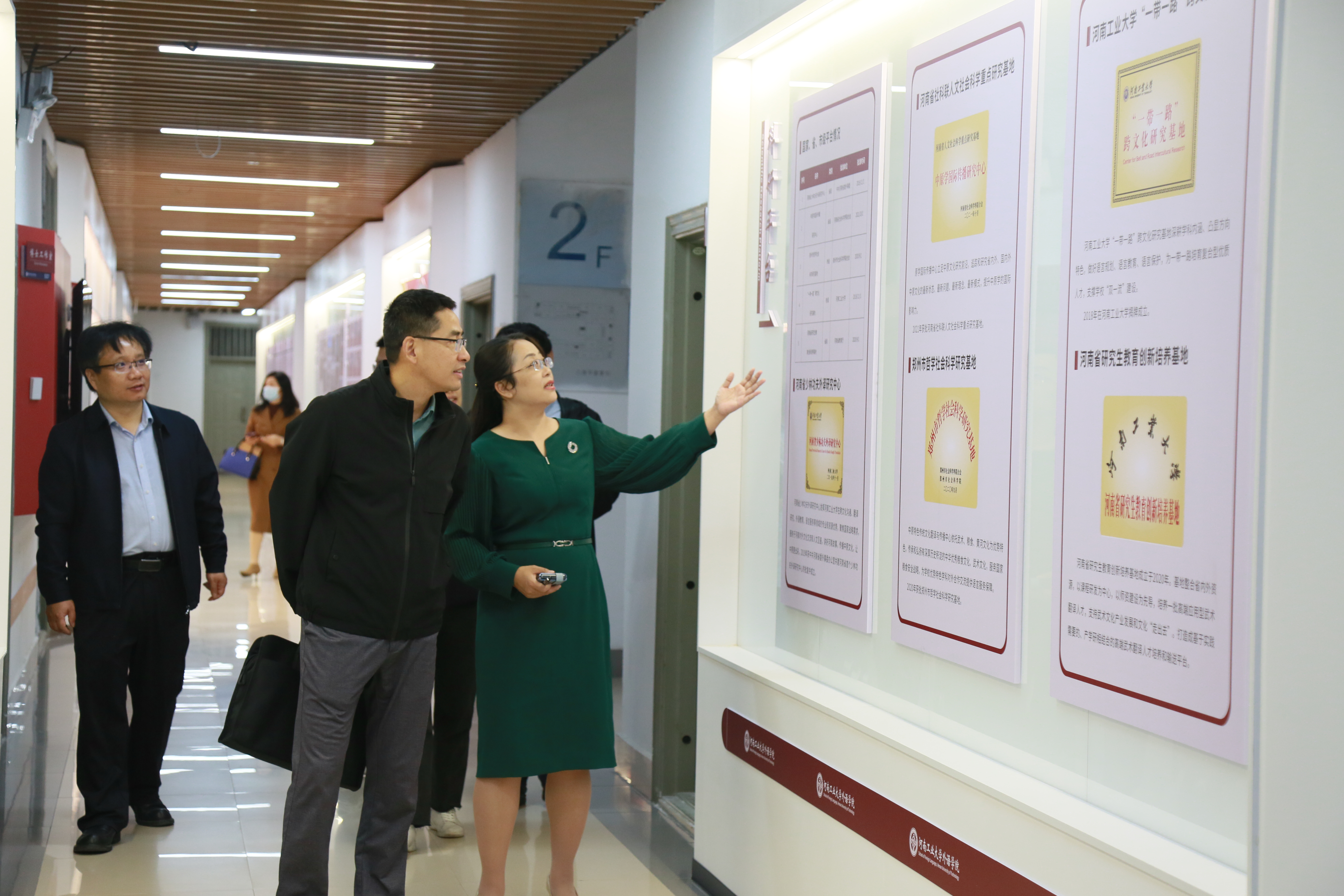 座谈会开始前,肖开红、杨丽雅一行参观了足球现场成绩