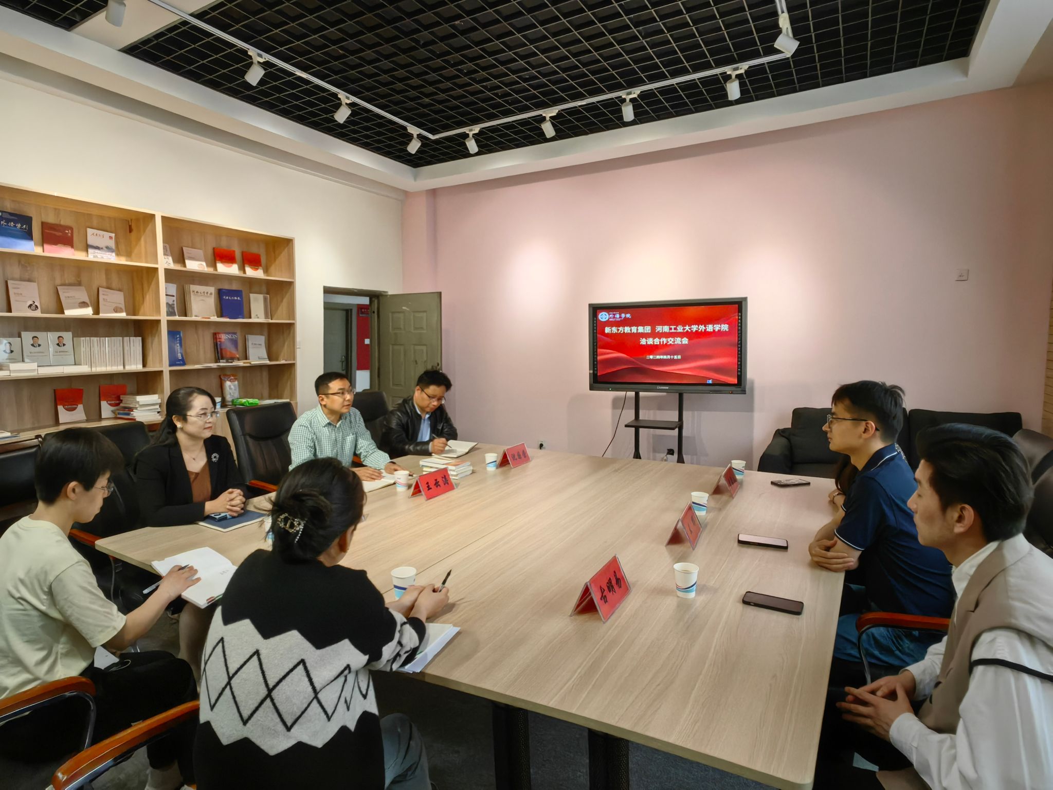 曹金凤对新东方教育集团河南校区及业务进行了简要介绍。王辉从如何利用新东方的资源优势助力学校实践教学、就业指导等工作进行了简要介绍,并表示希望通过强化校企合作,为学生未来发展铺好坚实基础。