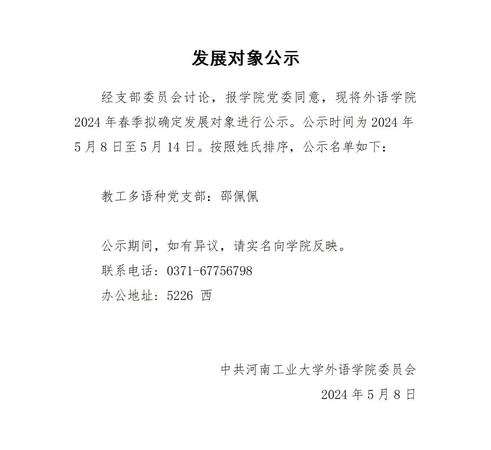 关于确定邵佩佩同志为发展对象的公示