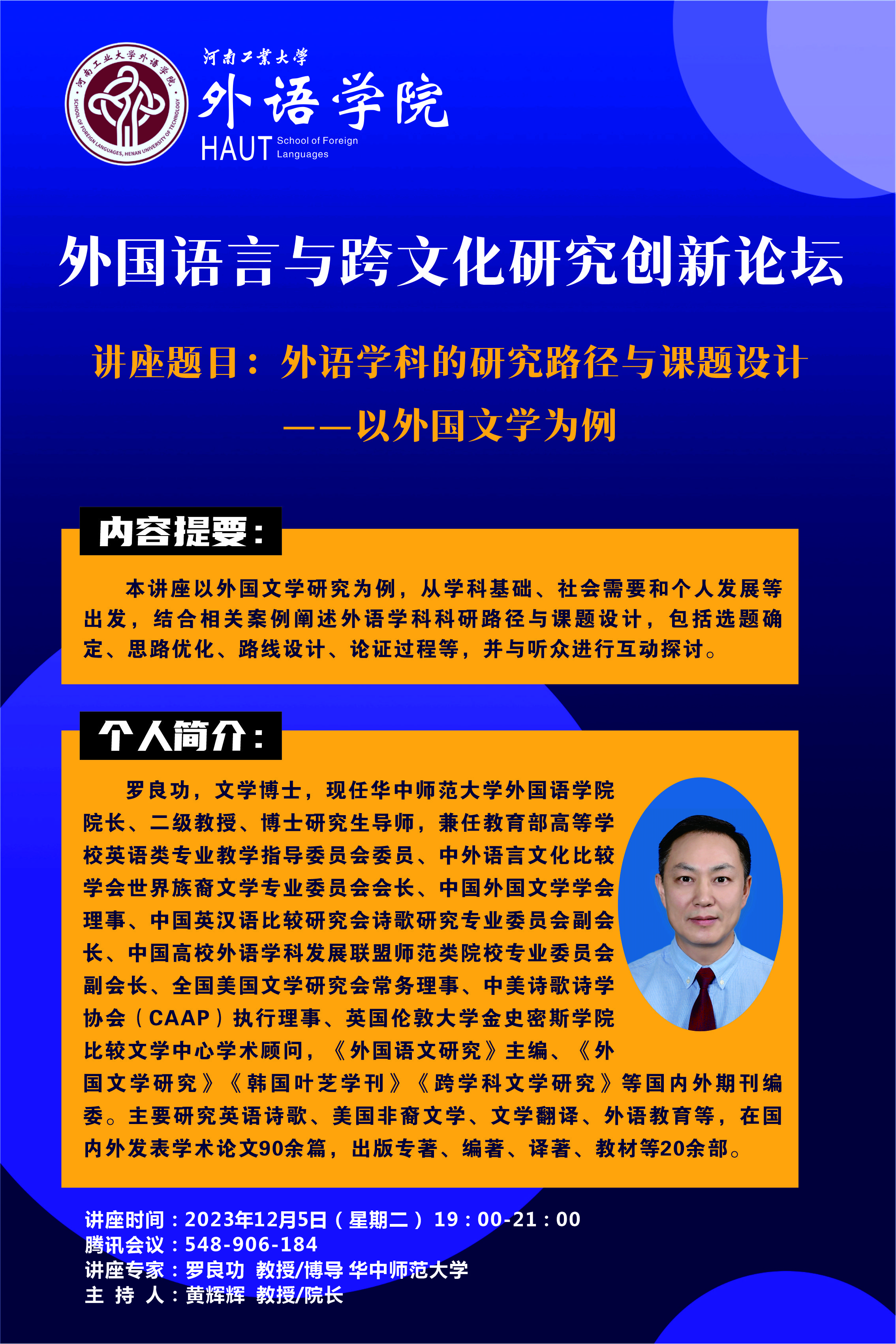 外国语言与跨文化研究创新论坛——外国文学名家讲坛系列报告