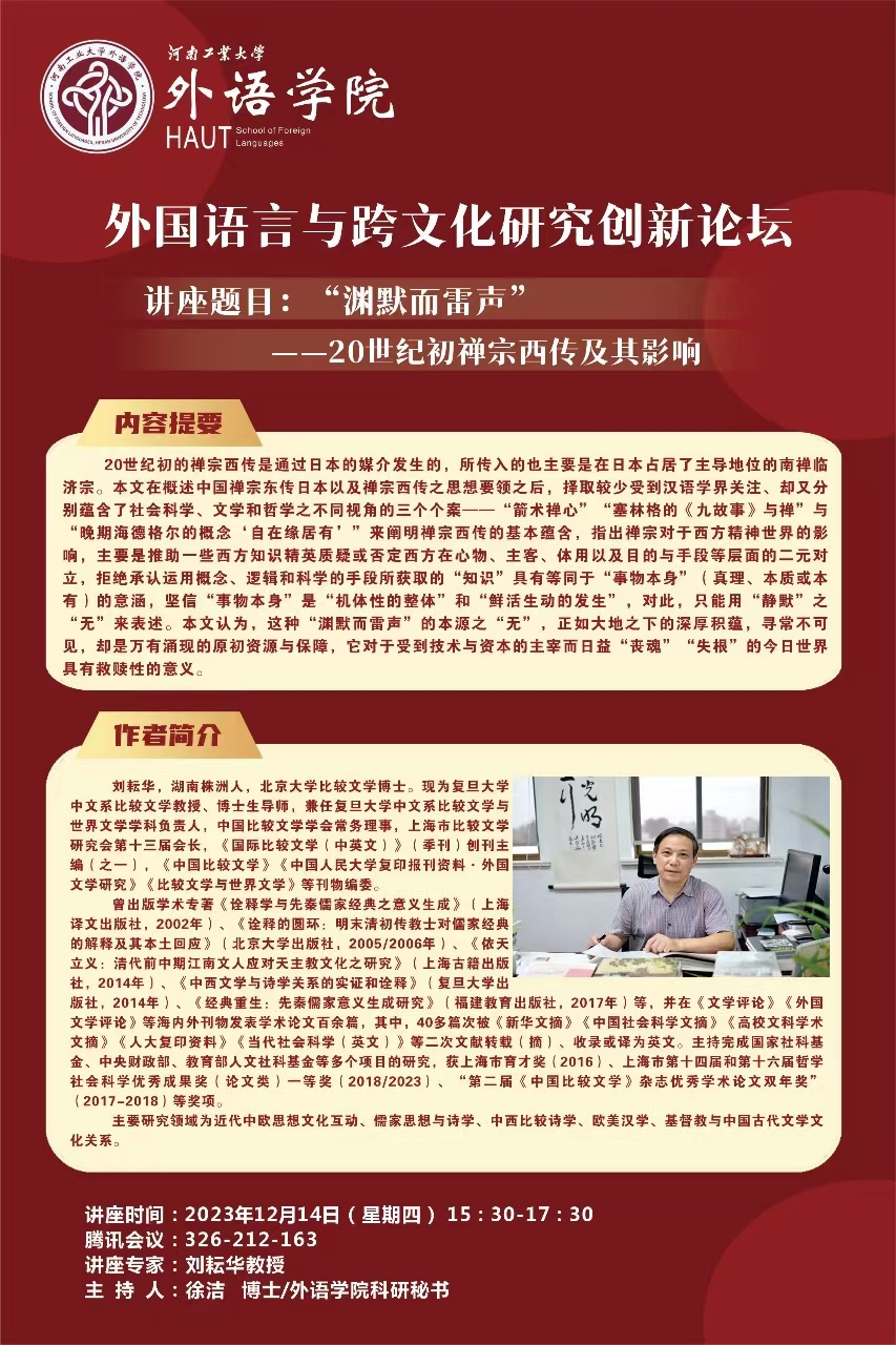 外国语言与跨文化研究创新论坛·外国文学名家讲坛系列报告(4)