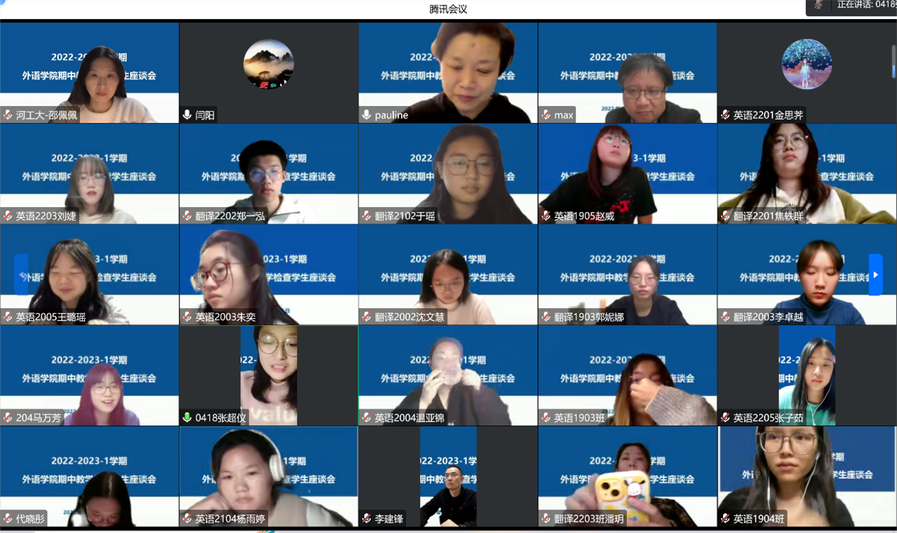 分别于11月17日、18日在线召开学生座谈会和教师座谈会,倾听师生心声,了解教情学情。学校教学督导程大友教授、教务处教师教学发展中心主任赵静、足球现场成绩