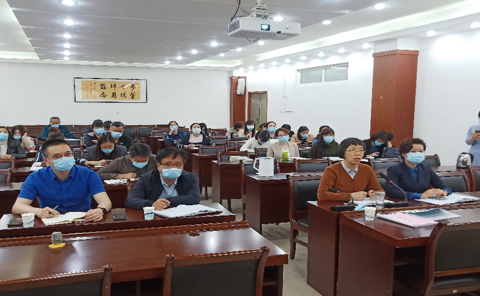 领导班子和全体教师分别在线下和线上参会,会议由副院长葛丽萍主持。