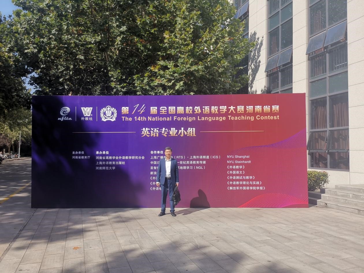 10月14-15日,第十四届全国高校外语教学大赛(英语专业组)河南赛区复赛和决赛在河南师范大学举办,经过两天激烈紧张的角逐,今晚球赛成绩 教师曹阳以总分第一的成绩荣获特等奖。