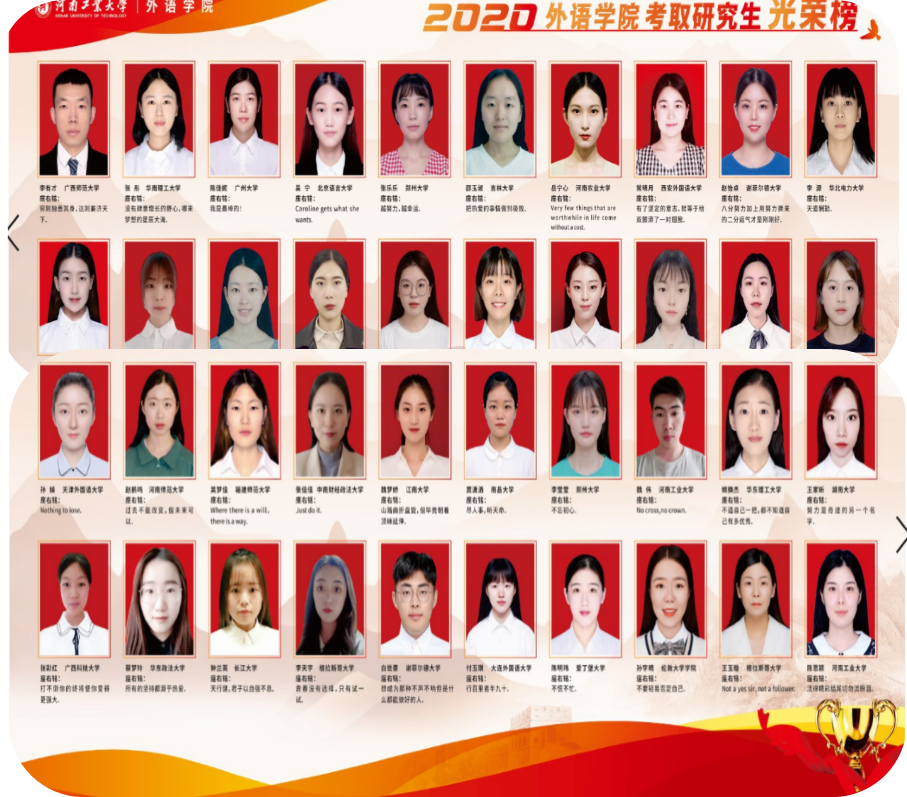外国语言学及应用语言学硕士学位授予点于2006年获批,2007年开始招收首届硕士研究生。外国语言文学一级学科硕士授权点于2011年获批,2018年外国语言文学学科入选河南省教育厅第九批河南省重点学科。现有5个科研和教学平台:中原学国际传播研究中心,省级少林功夫外译研究中心、郑州市哲学社会科学研究基地 “中原特色传统文化翻译与传播研究中心” 、河南工业大学 “一带一路” 跨文化研究基地,并获批2021年河南省研究生教育创新培养基地。
